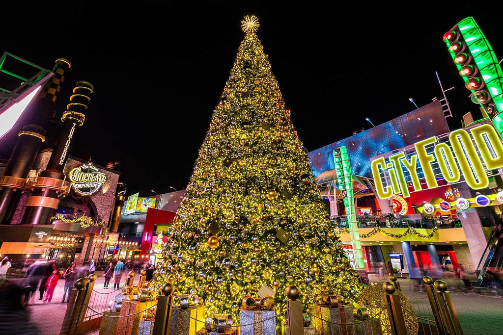 The huge Christmas tree sits in the center of the CityWalk’s open area, just in front of the AMC theaters.