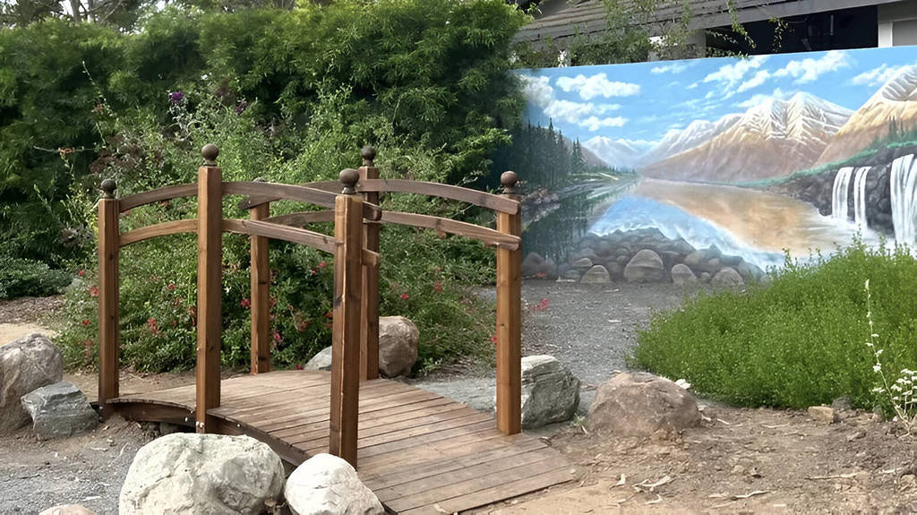 Der Park ist im Wesentlichen ein wunderschön gepflegter, von der Gemeinde verwalteter Fleck Erde, der wirklich die Größe eines Vorstadtvorgartens hat. Es gibt sogar einen perfekt gepflegten Wanderweg, eine dekorative Holzbrücke und ein malerisches Wandgemälde eines Wasserfalls sowie einheimische kalifornische Pflanzen wie den Sea Cliff Buckwheat, die alle mit offiziell aussehenden Schildern gekennzeichnet sind.