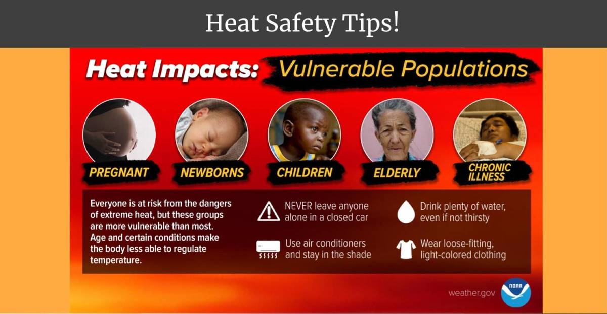 Eine vollständige Liste mit Tipps zum Schutz vor einer Hitzewelle finden Sie unter NWS Heat Safety Tips.