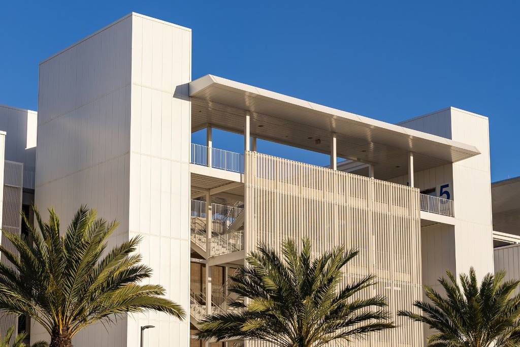 Actualmente, se puede acceder al Centro Consolidado de Alquiler de Coches mediante un servicio de lanzadera unificado. Solo tienes que buscar las señales de «Rental Car Shuttles» en la terminal. Sin embargo, el edificio está diseñado para ser la última parada del tan esperado tren Automated People Mover (APM). Una vez que el tren entre en funcionamiento a finales de 2026, los viajeros podrán hacer un rápido trayecto eléctrico de 10 minutos directamente desde su terminal hasta el centro, evitando por completo el tráfico del aeropuerto. Juntos, el centro de alquiler de coches y el tren APM eliminarán unos 3200 viajes diarios de los autobuses de alquiler de coches desde la zona de la terminal central del LAX.