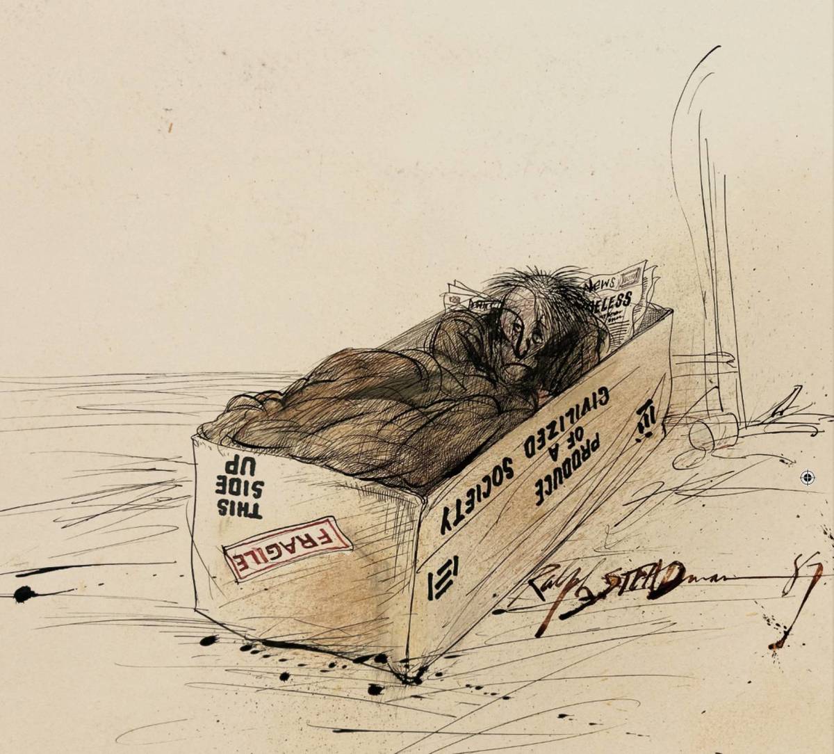 Best known for his groundbreaking collaboration with journalist, Hunter S. Thompson, the duo behind Gonzo journalism classics like Fear and Loathing in Las Vegas, Steadman’s influence stretches far beyond the page. His art is political, satirical, emotional, and often unsettling in the best way.