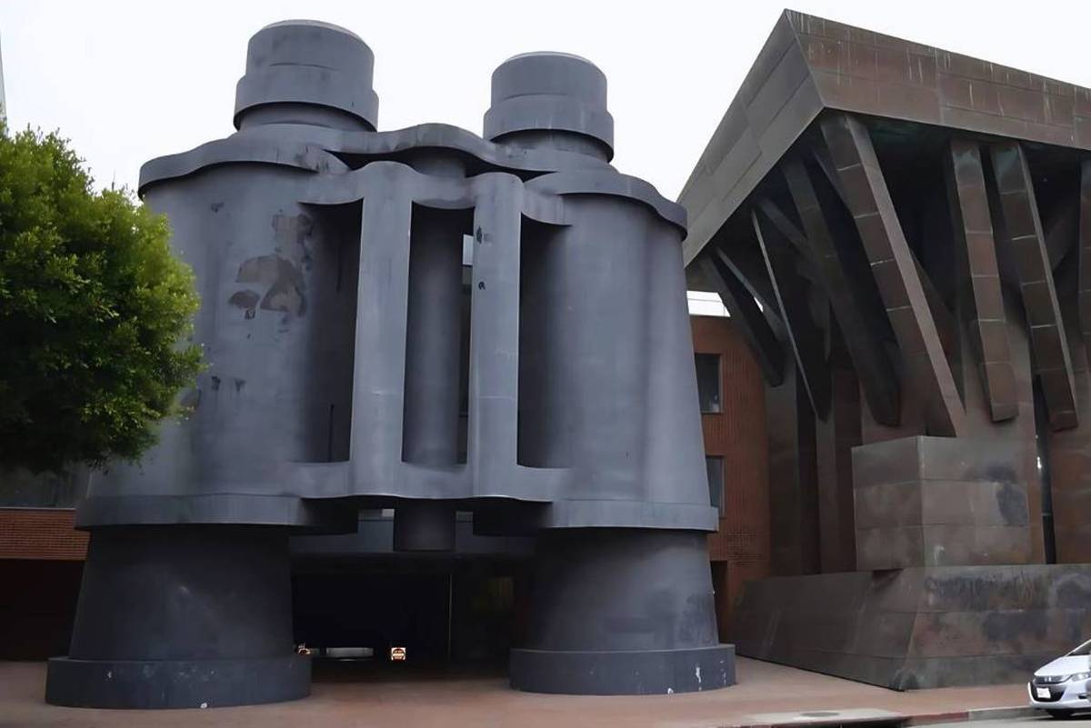 This surreal landmark uses giant binoculars to form the building’s entrance, leading into a sculptural office complex.